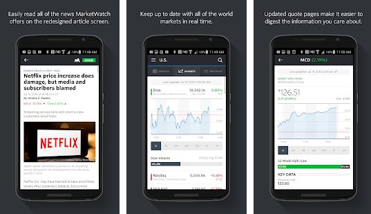 Market Watch is a useful and best finance news app that keeps you updated by collecting critical financial news, worldwide market stories, product prices, daily analysis of the market, and more. The app also keeps you update with the latest stock market news, and you can use it while on the go.